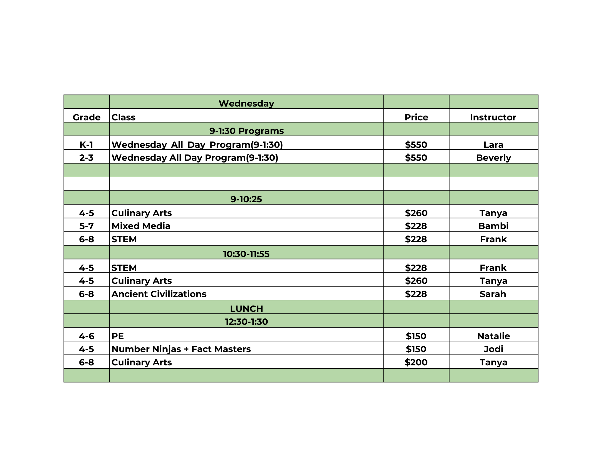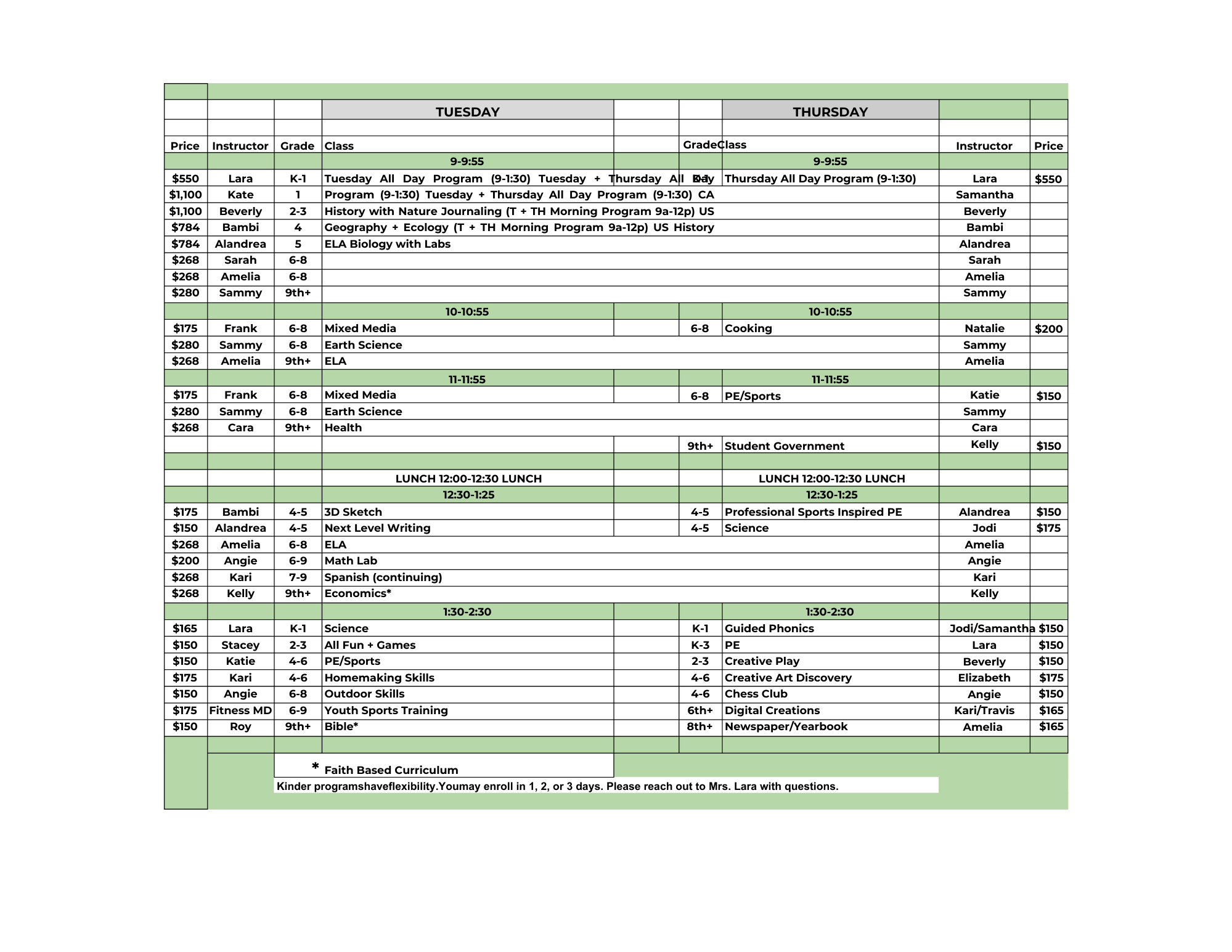 Spring 2026 ILA Class Schedules Class descriptions can be found HERE Our Tuesday/Thursday schedule offers both 1 and 2 day per week options Wednesday classes are single day options